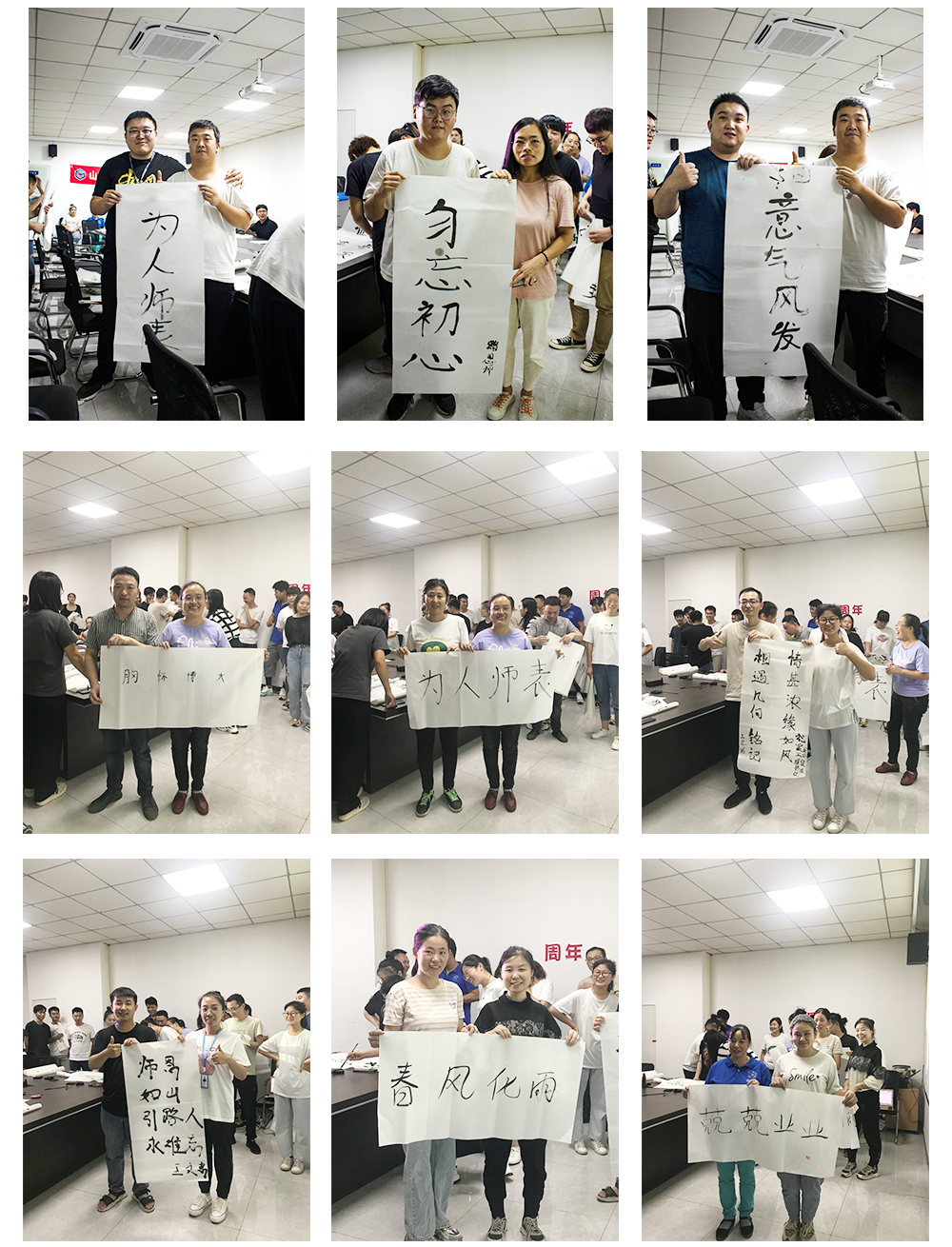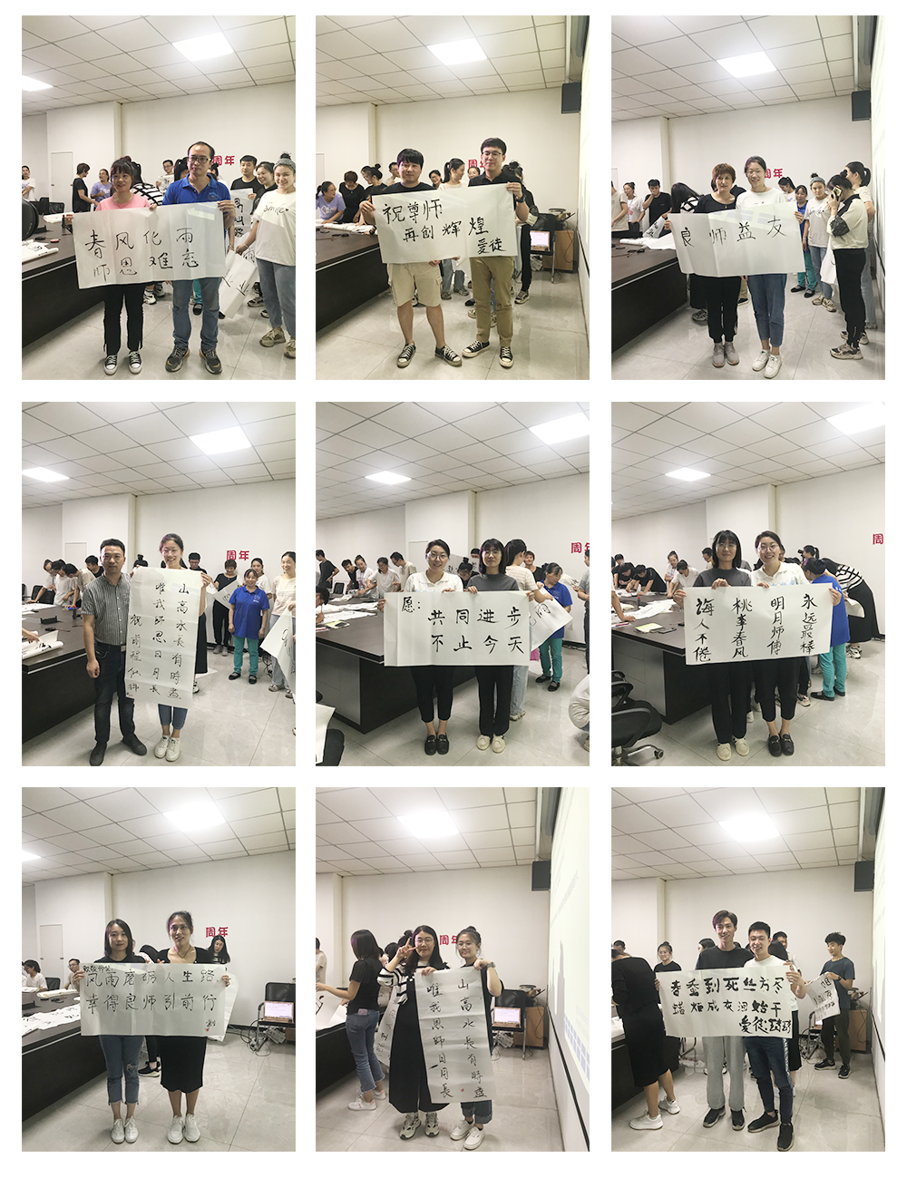 第二個環(huán)節(jié)是徒弟為師寫一幅字,表達(dá)對師的感恩與敬意。此期間師與徒弟共同完成書法,徒弟將書法雙手獻給自己的師,并與師合影留念。濃濃的師徒情誼感染了在場的每一個人。相信在以后的工作中也定會師徒齊心,完成前方的困難與挑戰(zhàn)。