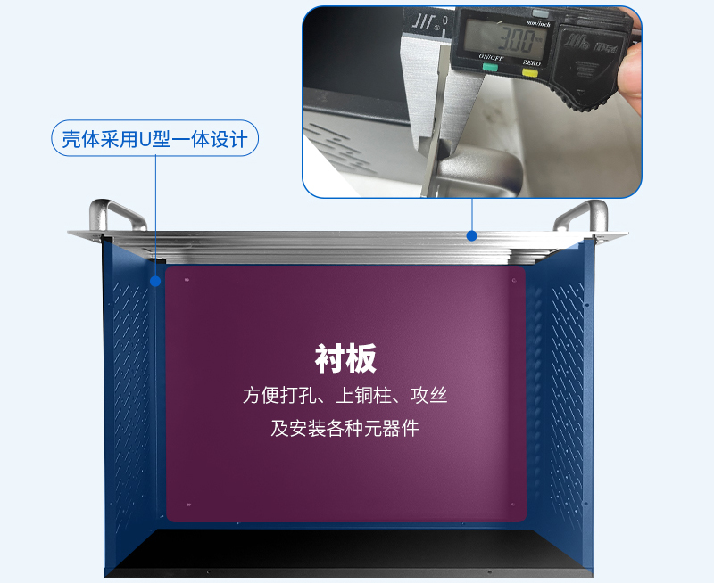 服務(wù)器工控機(jī)箱采用U型—體設(shè)計(jì),搭配鋁型材前面板與鋁把手,結(jié)構(gòu)穩(wěn)定,同時(shí)可以容納更多的硬件設(shè)備,節(jié)省空間和成本。