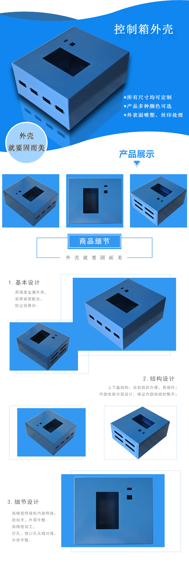 * 此款外殼適用于控制箱外殼,電源機(jī)箱外殼,小型電子機(jī)箱外殼定制加工,鈑金金屬外殼來(lái)圖來(lái)樣定制。